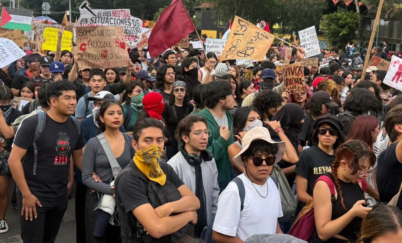 Esta noción de la importancia de denunciar el genocidio en curso, recrudecido visiblemente durante los últimos dos años, tomó cuerpo en la pancarta tras la que marcharon los veteranos que conducen todavía al movimiento estudiantil, como si fueran unos consejeros a los que sigue una variada juventud mexicana: “el silencio ante los genocidios es complicidad”, decía.